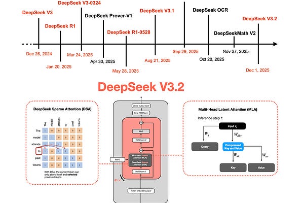 From DeepSeek V3 to V3.2: Architecture, Sparse Attention, and RL Updates