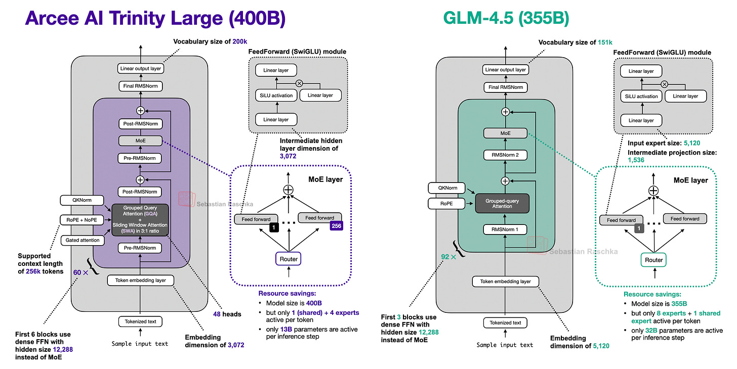 It’s been a while since the last LLM architecture addition. On January 27, Arcee AI (a company I hadn’t had on my radar up to then) began releasing versions of their open-weight 400B Trinity Large LLMs on the model hub, along with two smaller variants.