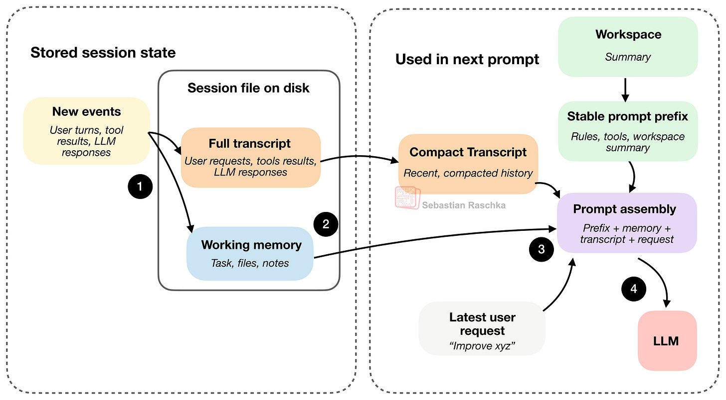 In the next section, I want to go more into the specifics and discuss the core components of a coding harness using my Mini Coding Agent: https://github.com/rasbt/mini-coding-agent.