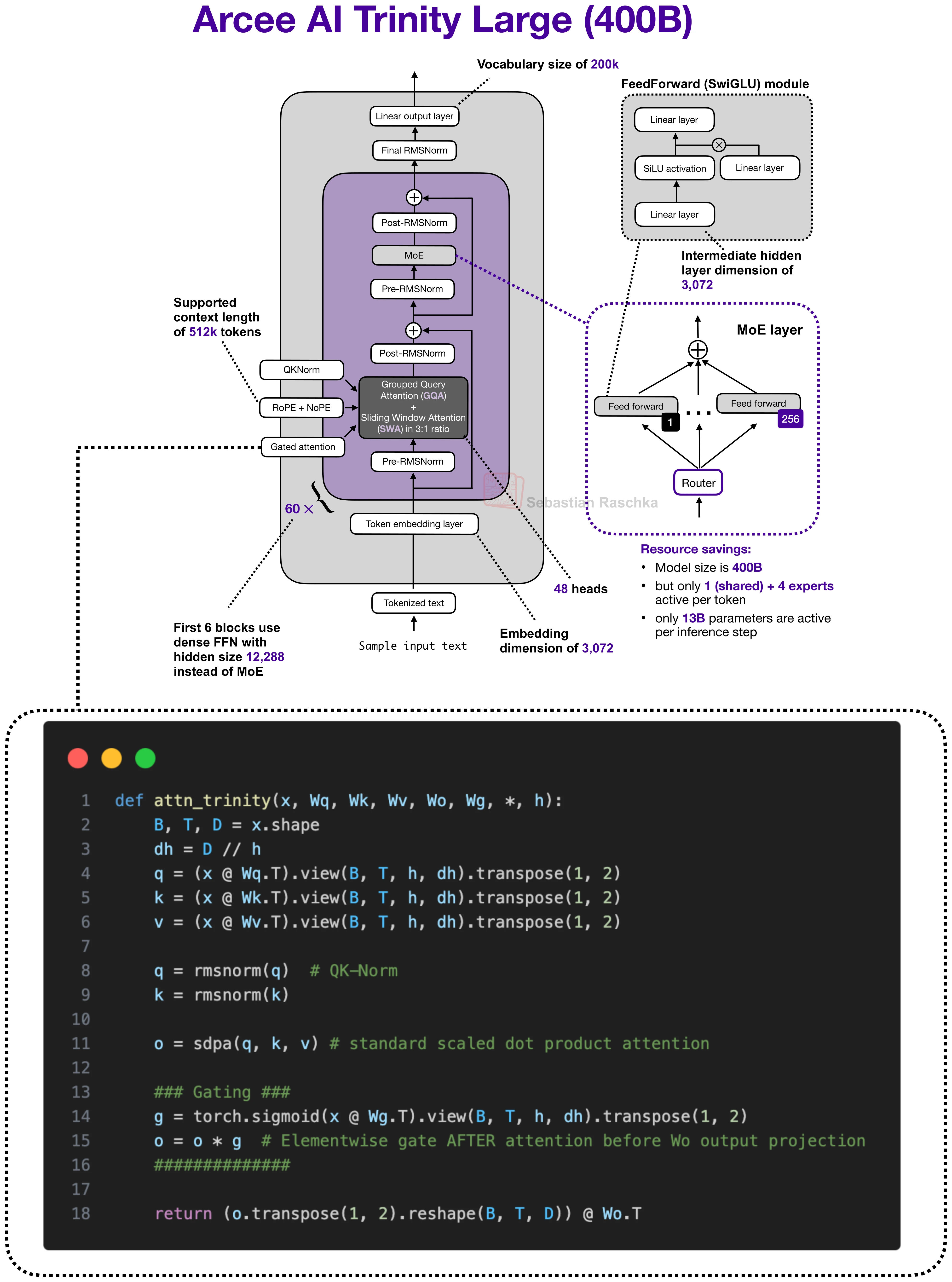 But hybrid architectures aside, Trinity uses a related gating idea in a more conventional attention stack, as shown in the previous figure above.